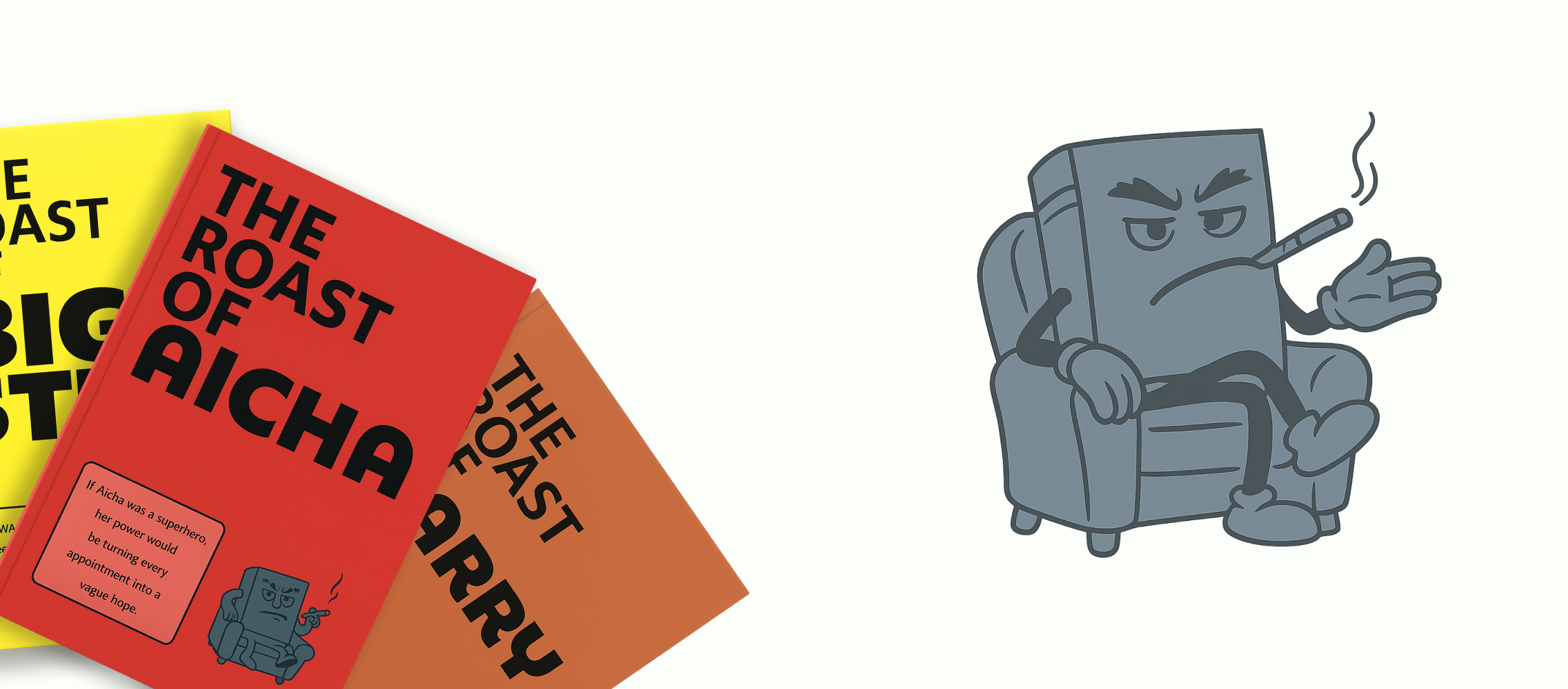 We use a custom AI roasting tool to help generate and shape the jokes, but every book is reviewed and edited by a real human to make sure it’s sharp, funny, and actually makes sense.